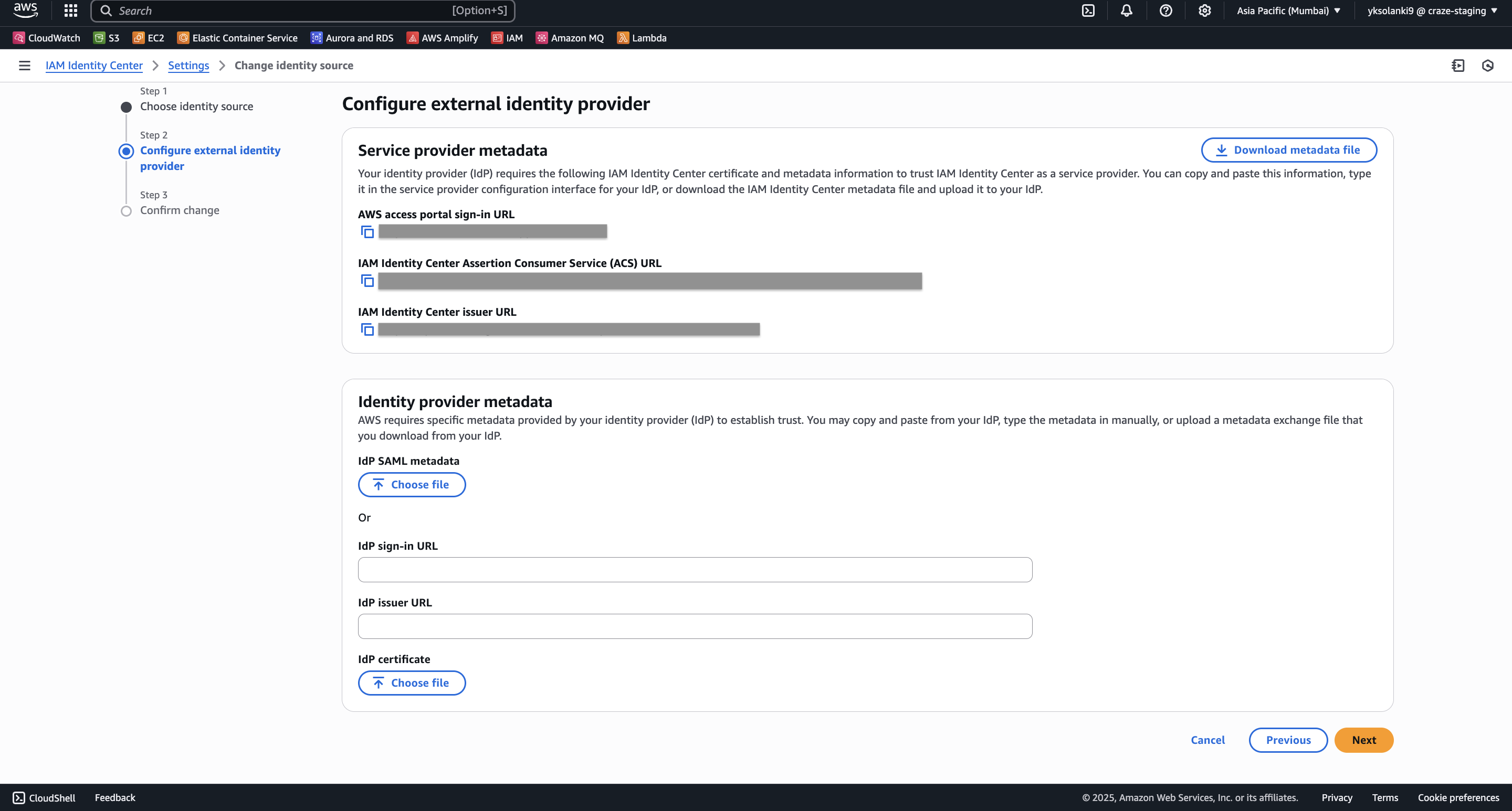 - Choose External identity provider as your identity source