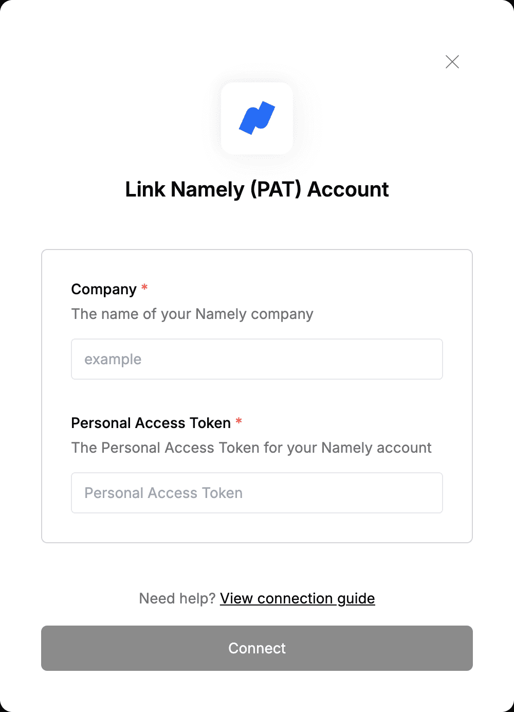 To authenticate with Namely (PAT), you need:- Company Name - Your company name, used to uniquely identify and access your organization’s Namely instance.