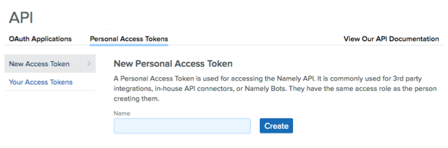 - Personal Access Token - A key that grants secure access to the API, enabling authorized applications to interact with Namely resources and services.