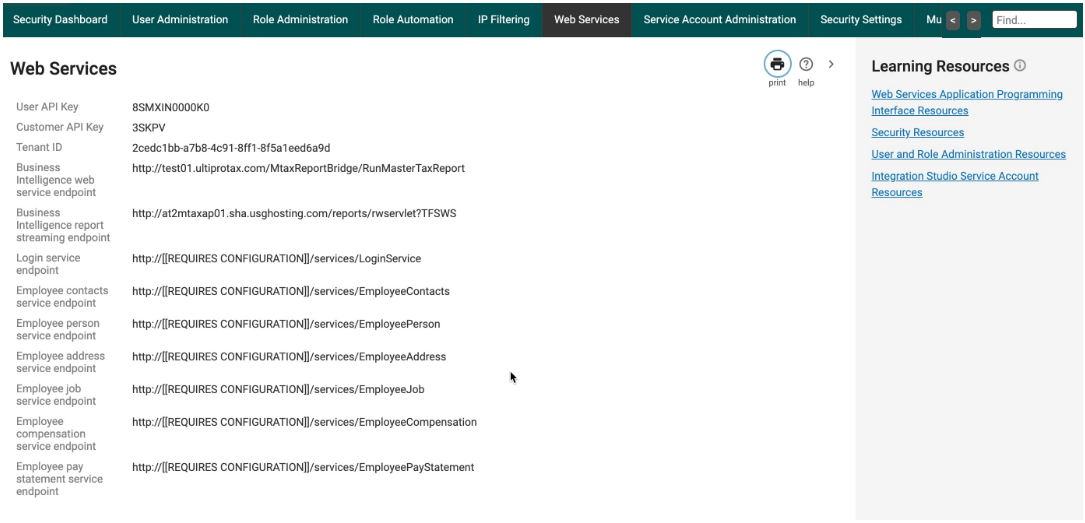 - The full service URL might look like “https://servicet.ultipro.com/services/”